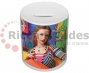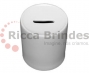 Cofrinho cerâmica. Abertura com tampa em baixo do cofre para retirada de moedas.