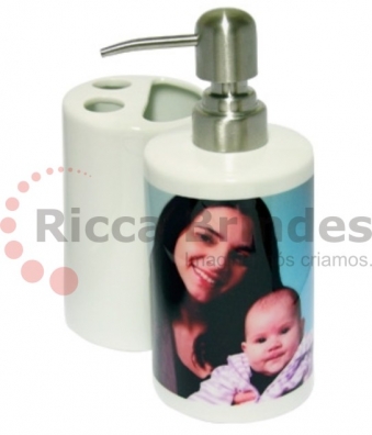 Porta Escova e Saboneteira Líquido em Porcelana.