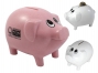 Cofre em formato de porquinho. Cores: Rosa e Branco. Dimensões: 14 x 9 x 9cm. Impressão: silk. Pedido Mínimo: 200 peças.