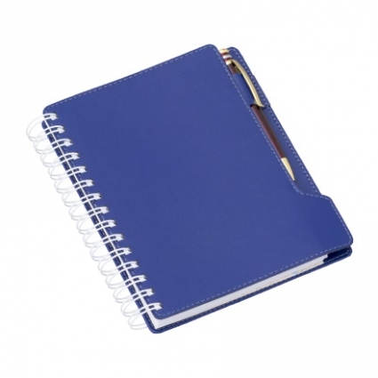 Agenda diária em wire-o, de mesa.Capa em couro sintético. Miolo off-set 63g 1x1 cor. Índice telefônico, Planejamento, Mapa em papel couchê 4x4 cores. Com suporte para canetas. NÃO ACOMPANHA CANETA.