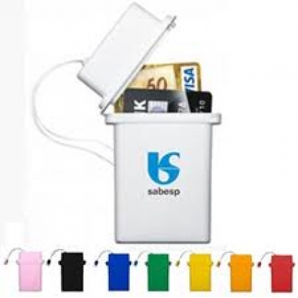Marinert Box Colorido, usado como porta dinheiro, porta camisinha e porta cartão de crédito, carnaval, eventos e litoral. Hotéis para chave do quarto. Injetado, com tampa, alça e cordão de PVC com regulador plástico.